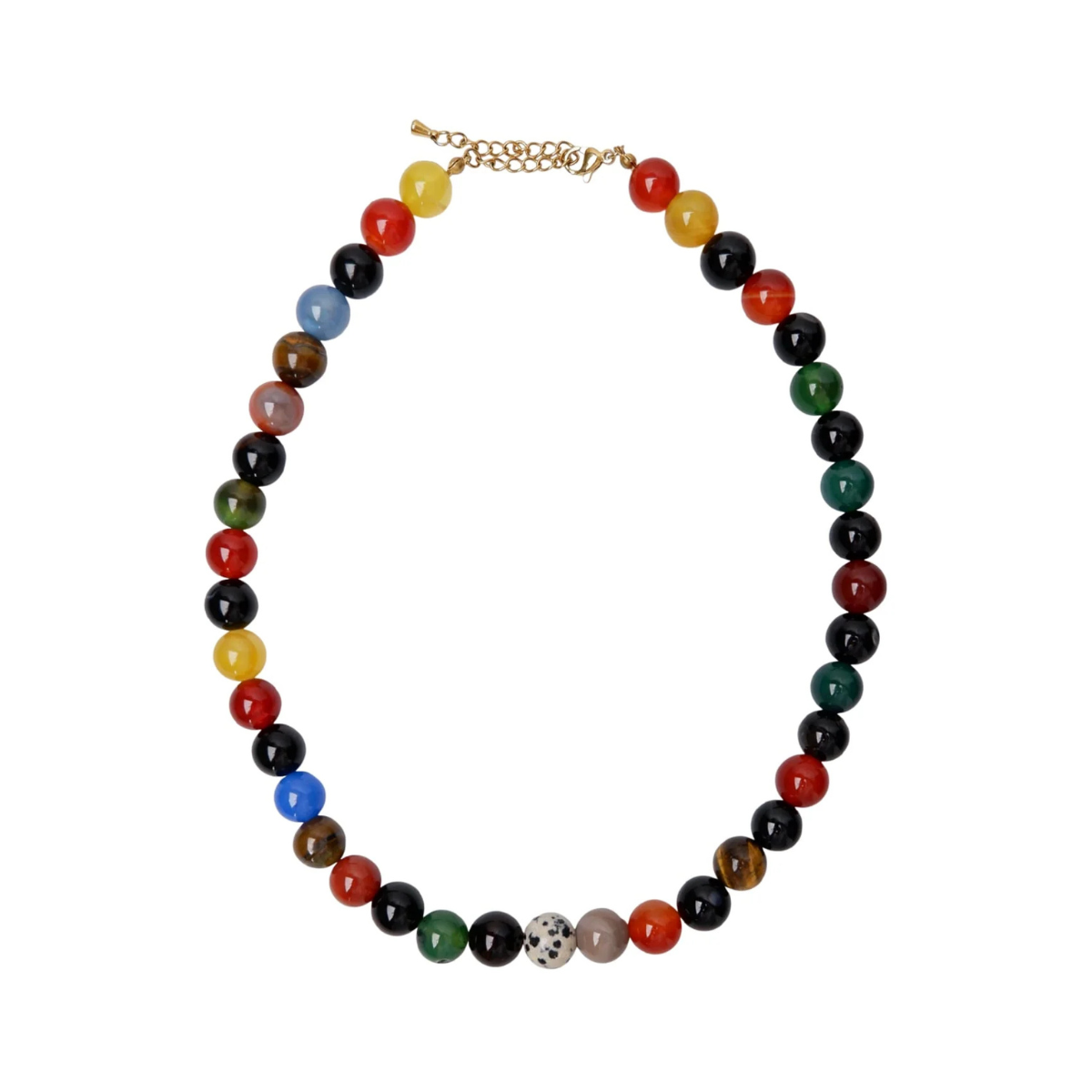 Fin perlehalskæde med runde stenperler i forskellige farver med en justerbar lukning, fra Black Colour.