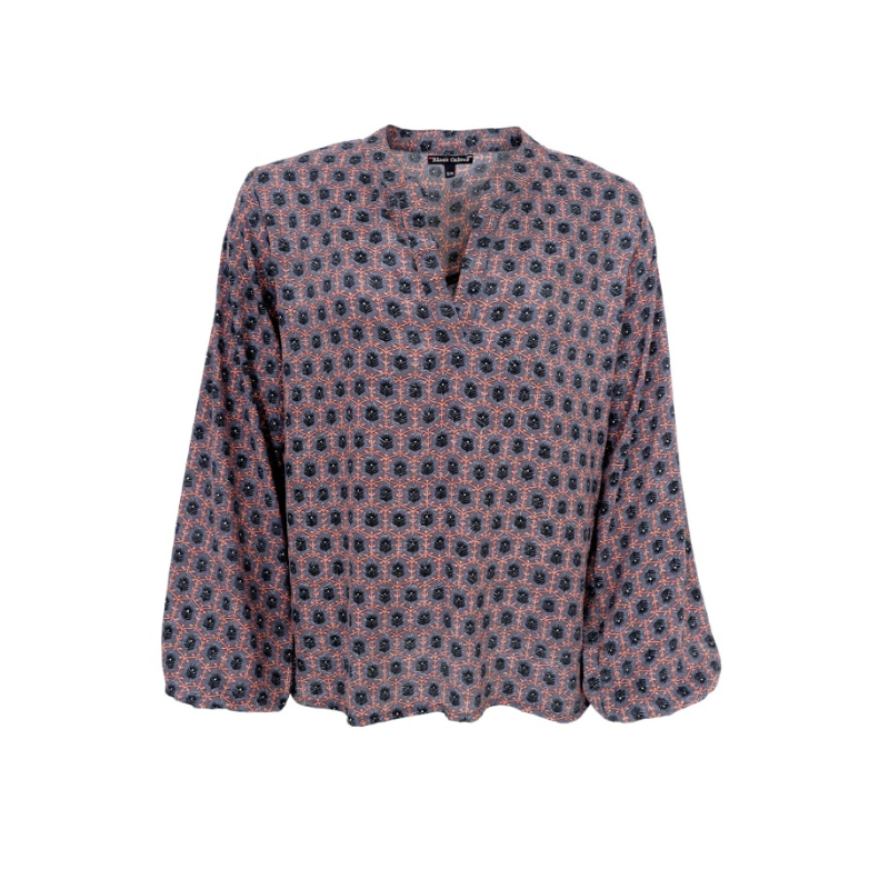 Fin bluse fra Black Colour. Blusen har elastik for enden af ærmet, V-udskæring foran og er en smule længere bagpå end foran.