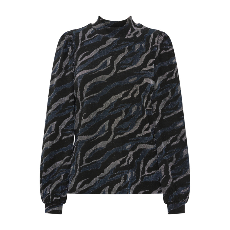 Mega fin bluse fra Fransa. Blusen har en rund halsudskæring, lange ærmer med elastik forenden. Den er normal i pasformen og går til hofterne.