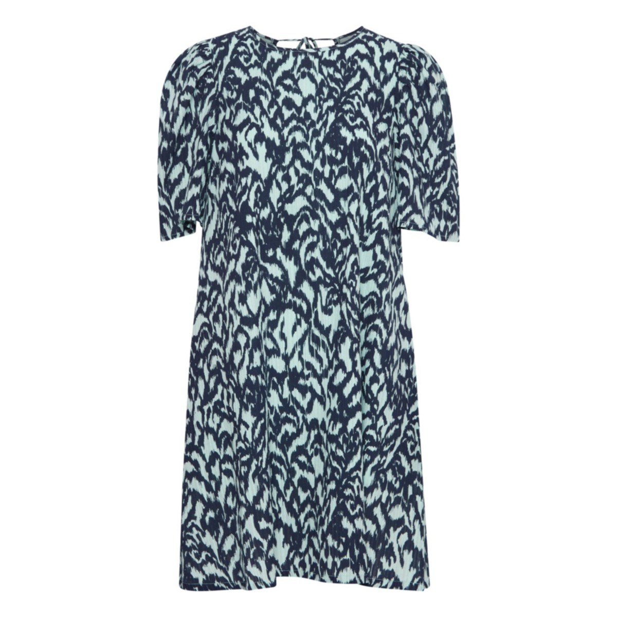 Super sød kjole fra Fansa. Kjolen er A-formet, har korte ærmer samt lukning med bindebånd bagpå.