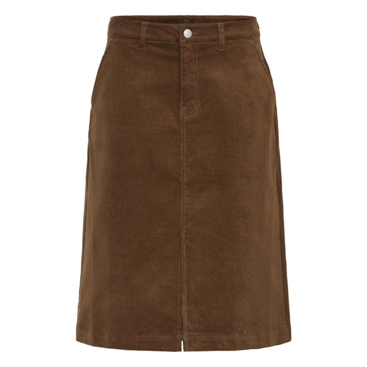Skøn fløjlsnederdel fra Fransa. Nederdelen har bæltestropper, knap- og lynlåslukning, skrålommer samt lidt længde.