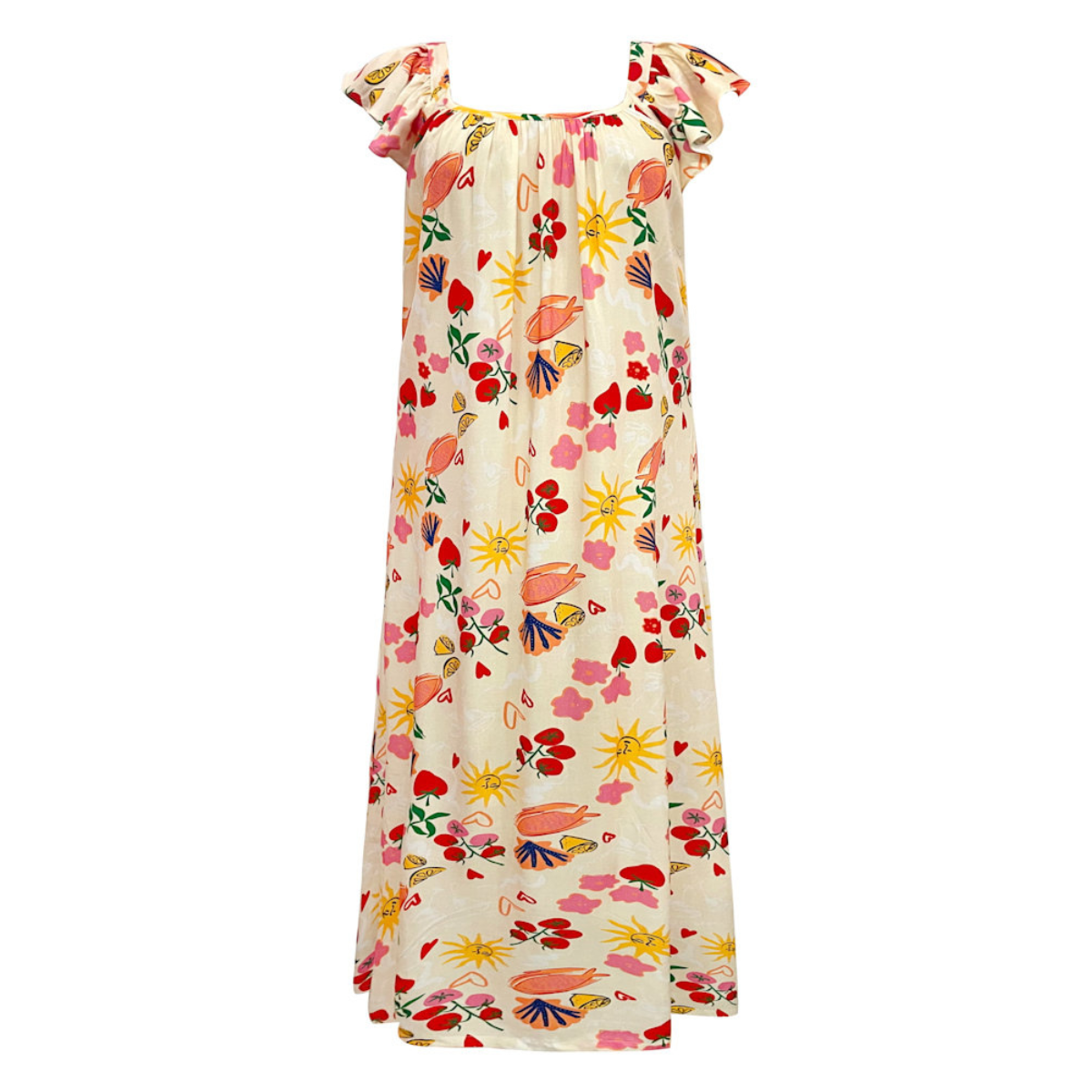 Super fin og farverig kjole fra Liberté. Den har en rund hals, brede stropper med en lille flæsedetalje, et løst fit samt et flot mønster.