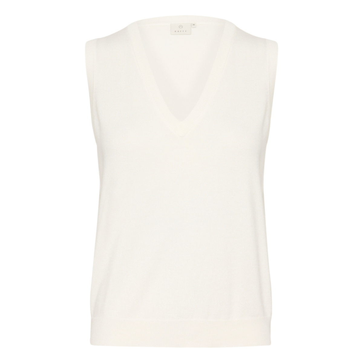 Mega fin strik vest fra Kaffe. Vesten har V-udskærring, ribkant detaljer ved alle afslutninger og en normal pasform.