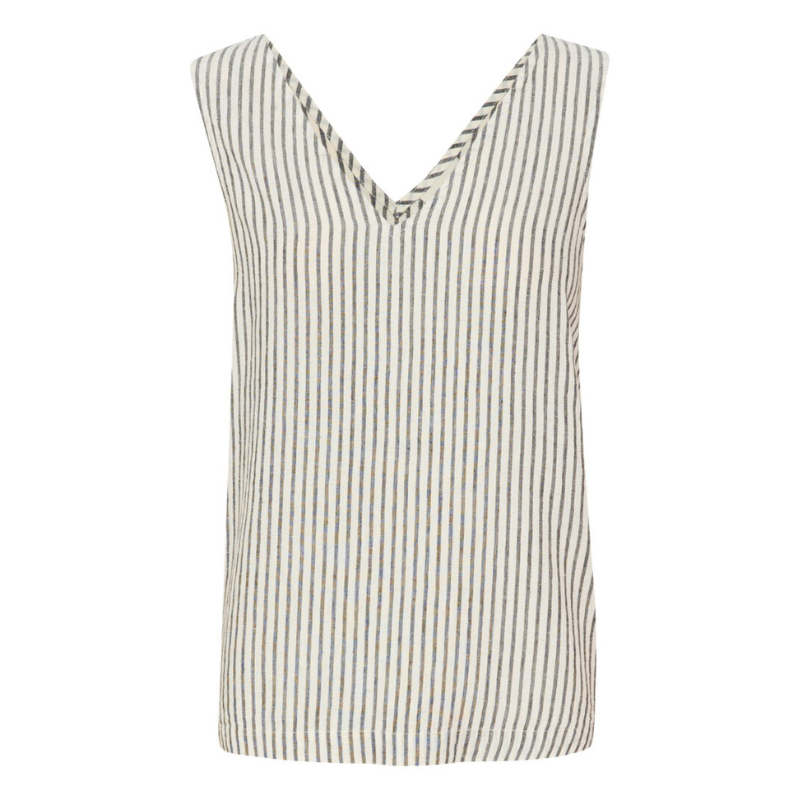 Fin bluse fra Kaffe. Blusen har V-udskæring efterfulgt af et par knapper og lange ærmer som kan foldes op og sættes i en knap. Kan styles med de matchende bukser. Materiale: 70% Viskose 30% Hør Vaskeanvisning: Vaskes ved 30 grader.