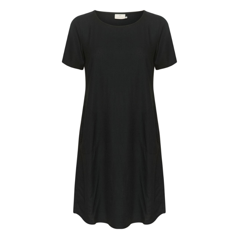 Fin og enkel kjole fra Kaffe. Kjolen har rund hals, korte ærmer og lommer i siden.