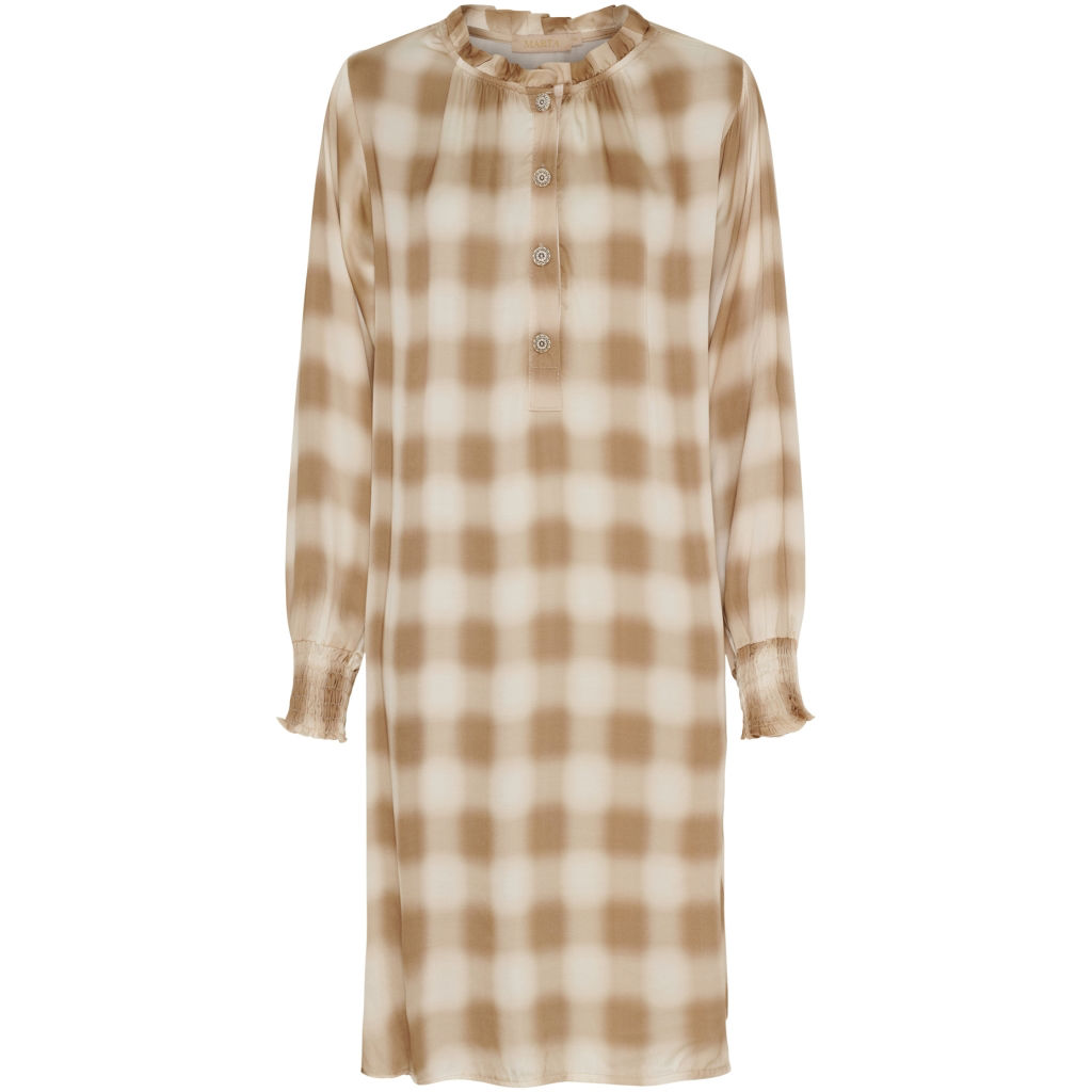 Smuk kjole med flot mønster fra Marta. Kjolen har 4 knapper, smock ved ærmerne samt en flæsedetalje ved kraven.
