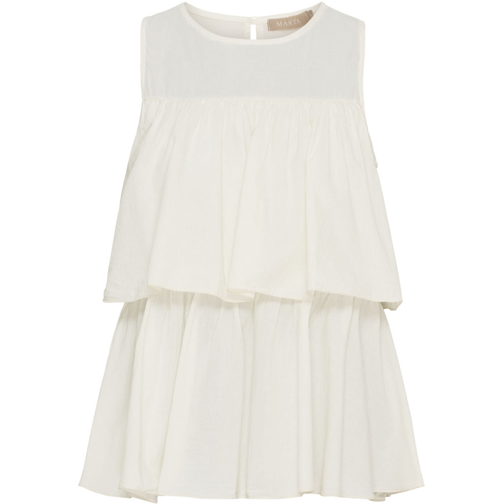 Super sød top fra Marta. Toppen bredde stropper, knaplukning bagtil samt flæsedetaljer. Materiale: 100% Bomuld. Vaskeanvisning: Vaskes ved 30 grader.