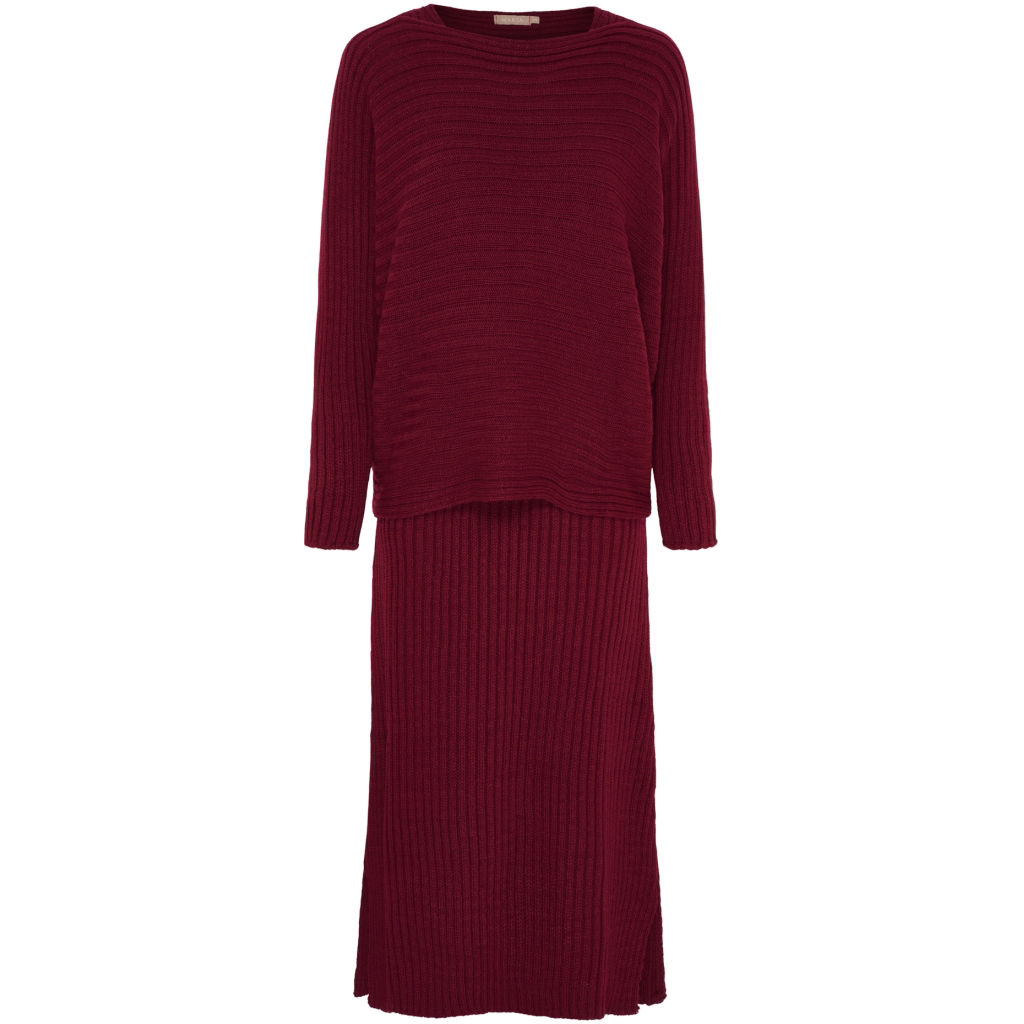 Fint sæt fra Marta. Sættet har en bluse med lange ærmer og en rund halsudskæring, samt en lang kjole. Materiale: 65% Akryl. 25% Polyamid. 10% Lana. Vaskeanvisning: Vaskes ved 30 grader.