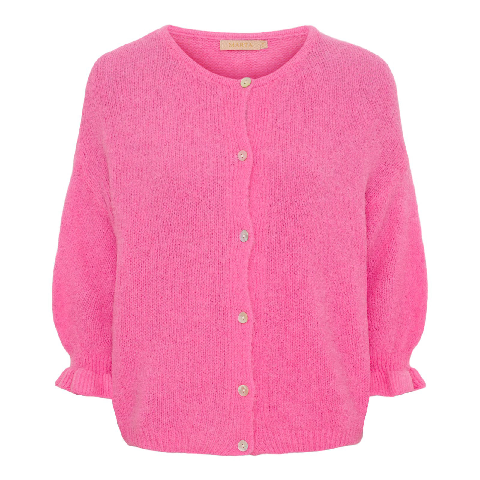 Mega lækker cardigan fra Marta. Cardiganen er gennemknappet, har rund haldudskæring samt fine flæsedetaljer ved ærmerne.