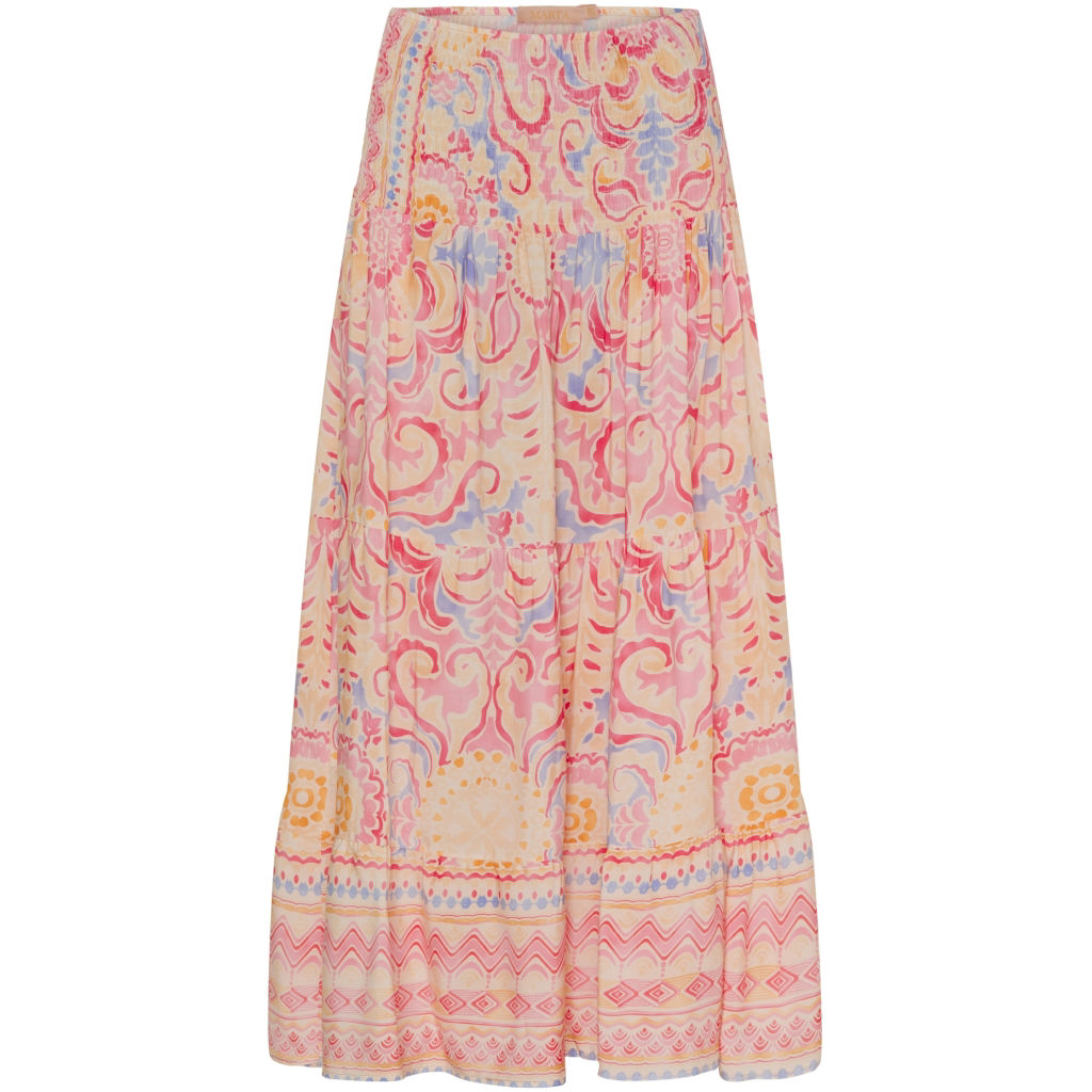 Gudesmuk nederdel fra Marta. Denne nederdel er lang, har smock i livet, derudover har nederdelen et smukt print med fine farver. Materiale: 100% Viskose. Vaskeanvisning: Vaskes ved 30 grader.