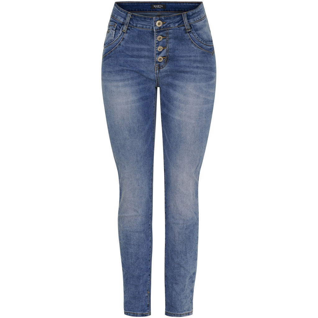 Dejlige jeans fra Marta. De har en tætsiddende pasform, cool knap-detaljer ved lukningen, bæltestropper samt lommer.