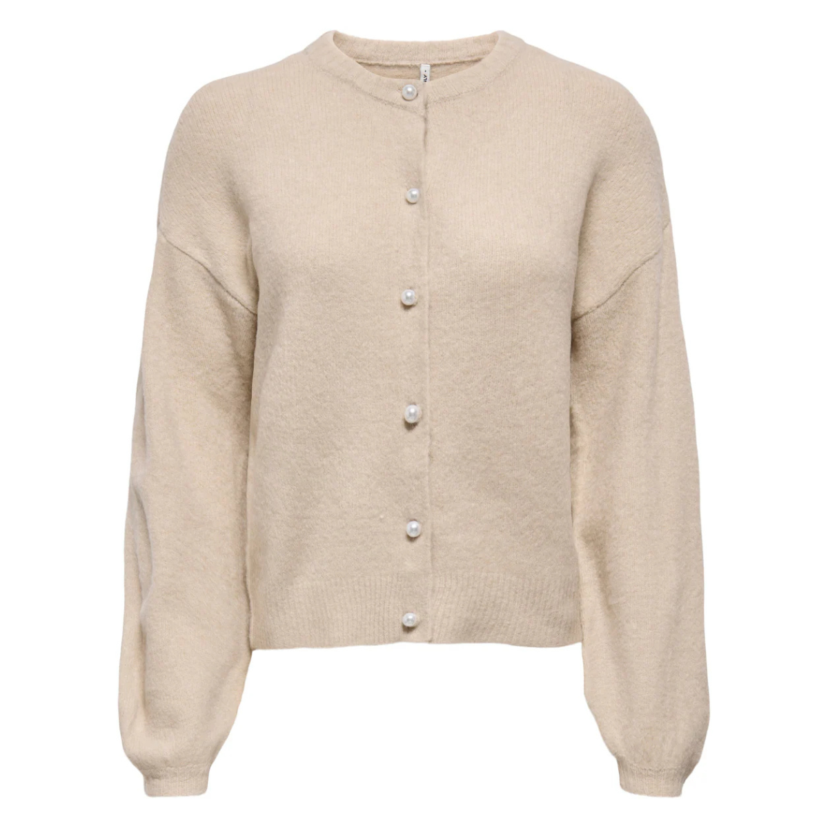 Blød og lækker cardigan med fine hvide perle-knapper, fra Only. Den har ballonærmer og ribkantsdetaljer i alle udskæringer. Materiale: 37% Polyester. 36% Akryl. 25% Nylon. 2% Elastan. Vaskeanvisning: Vaskes ved 30 grader.