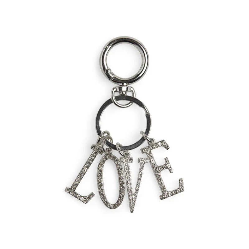 Mega sej nøglering fra Pieces med teksten LOVE i sølv sten.