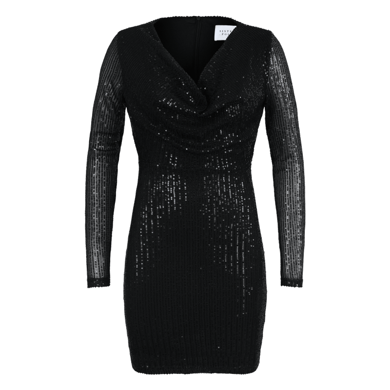 Super fin kjole fra Sisters Point. Kjolen har vandfaldsudskæring, er tætsiddene, har lynlås i ryggen og har en masse pailletter. Derudover har kjolen en inderkjole.