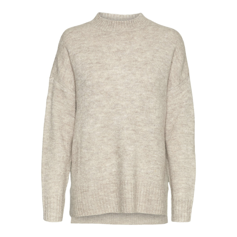Lækker strik fra Vero Moda. Strikken er oversized, har ribkant ved halsudskæringen, ærmerne samt nederst på strikken. Den er lidt længere bagtil derudover har den også slids i begge sider.