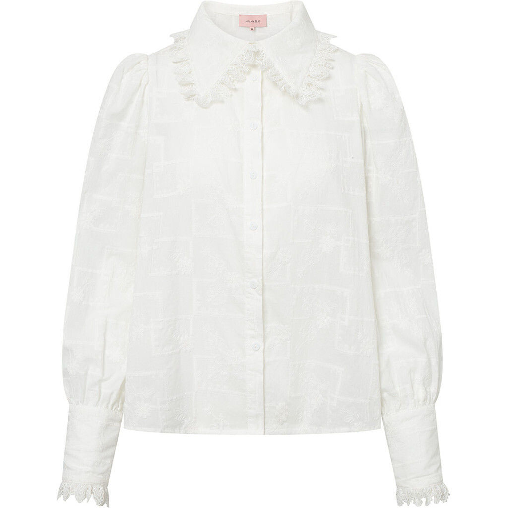 Smuk skjorte fra Hunkøn. Skjorten har en masse blonder, krave og er gennemknappet.