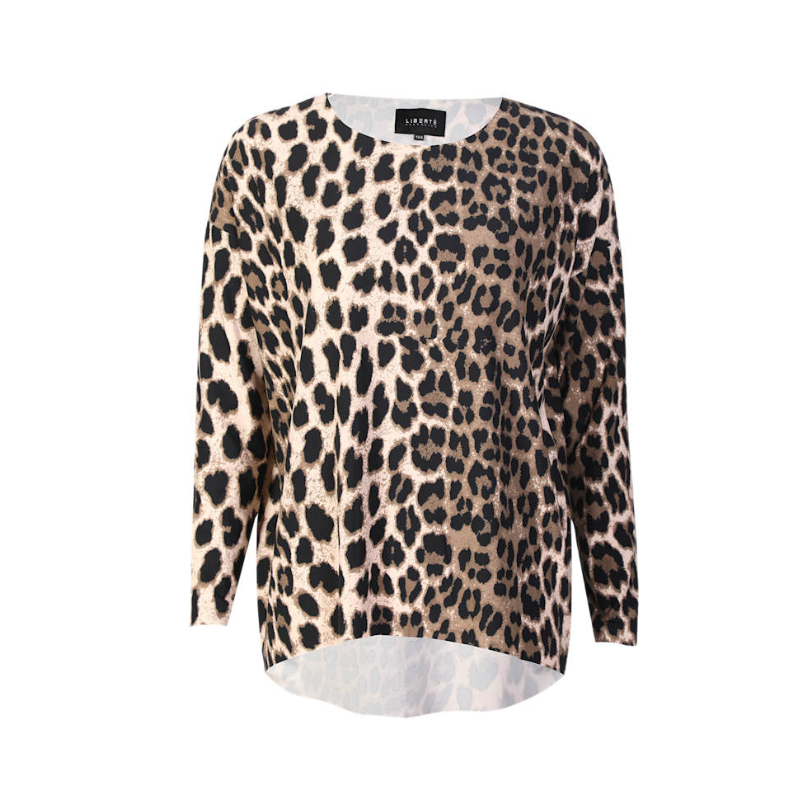 Blød liberté bluse i løst fit. Blusen har leopard print, og dens udskæringer har "cut". Kan styles med de matchende bukser.