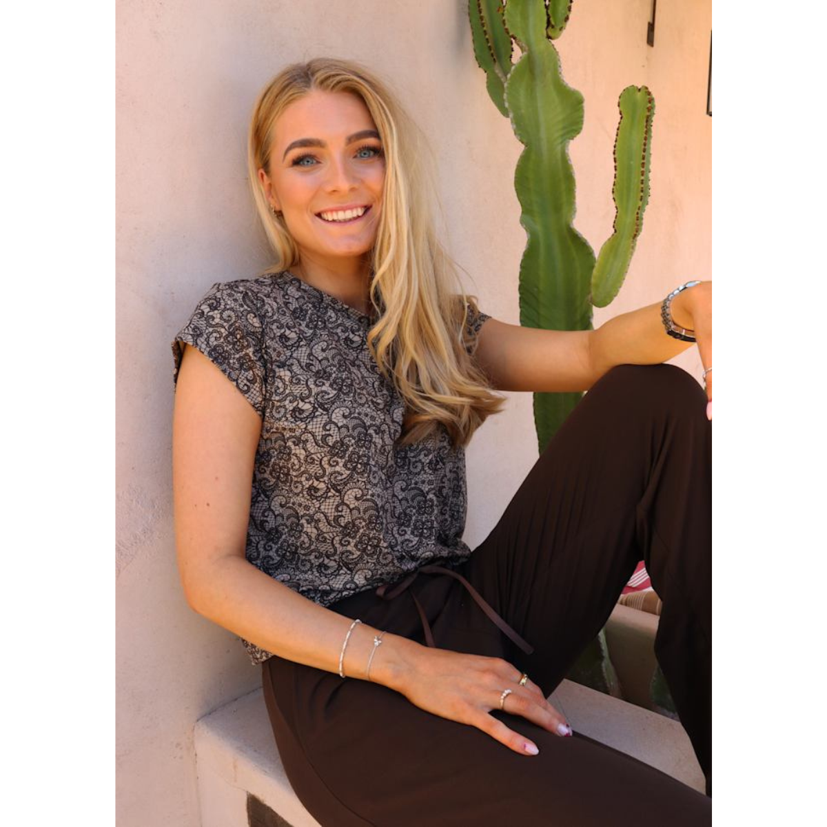 Fine og bløde bukser fra Liberté. Bukserne er i alma kvalitet, har vidde i buksebenene, lommer i siden og snører i taljen samt et flot blonde-look.