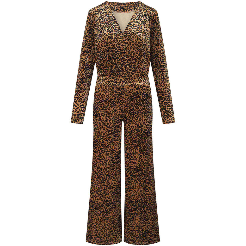 Mega cool buksedragt fra Hunkøn. Buksedragten har V-udskæring, elastik i taljen og brede ben. Den er i et lækkert materiale og med leopardprint.