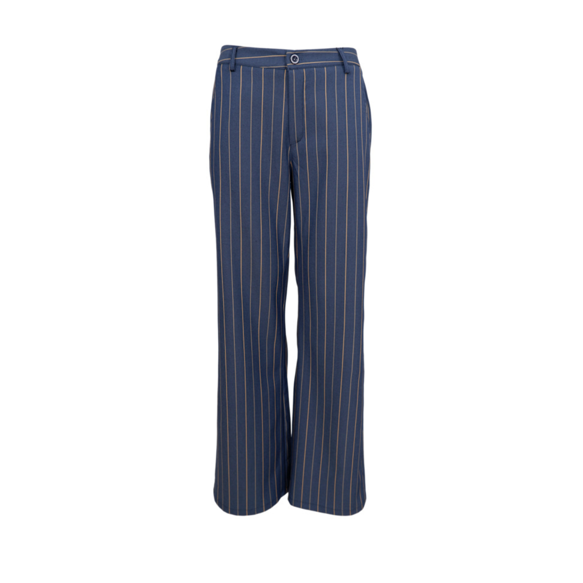 Super fede stribede bukser fra Black Colour. Buksen har elastik bagpå i taljen, to skrålommer fortil samt en pyntelomme bagpå. Derudover har de bæltestropper og har lidt bredde i benene.