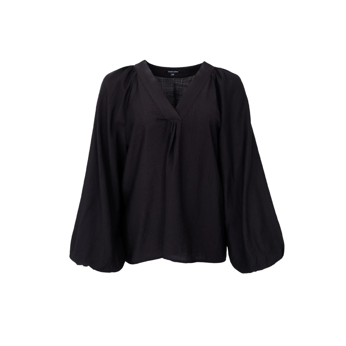 Smuk ensfarvet bluse fra Black Colour. Blusen har løse ærmer med elastik ved håndledet, v-udskæring samt et løst fald.
