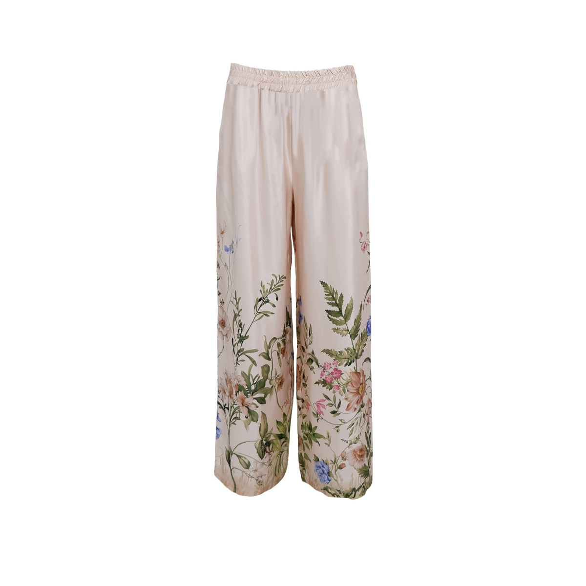 Flot buks fra Black Colour. Buksen har elastik i taljen, bredde ben samt et blomster design nederst på buksebenene.