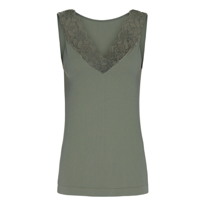 Skønneste basic vare i microfiber med stræk og lækker blød at have mod huden. Toppen er med v-udskæring og blonde.