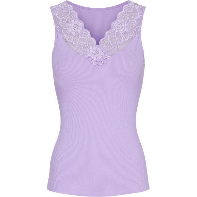 Skønneste basic vare i microfiber med stræk og lækker blød at have mod huden. Toppen er med v-udskæring og blonde.