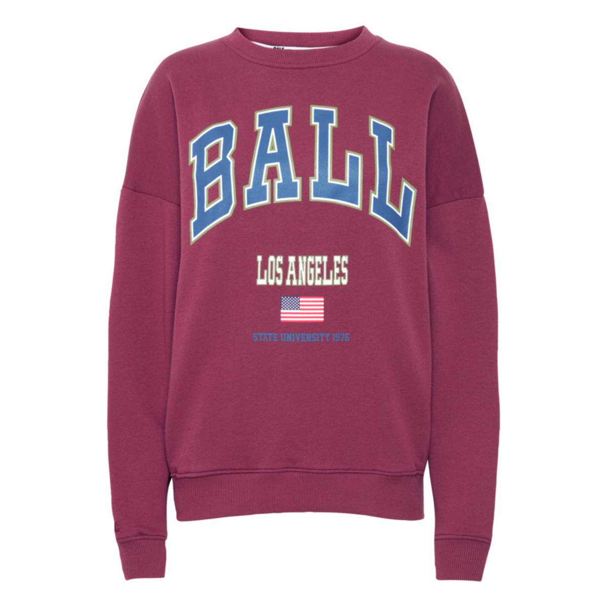 Cool sweatshirt fra BALL. Den har rund hals, lange ærmer, ribkant detaljer ved alle afslutninger samt logo og skrift fortil.