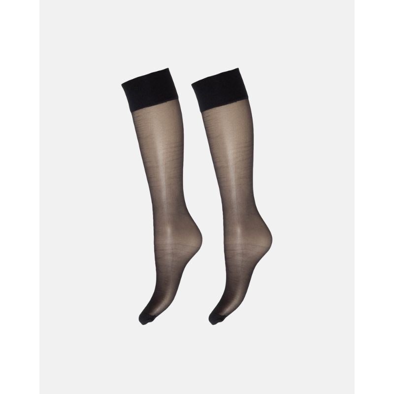 Flot og let skinnende knæstrømper i 20 denier fra Decoy. Strømpen har en bred og behagelig top elastik samt en forstærkning og maskefang i tåen.