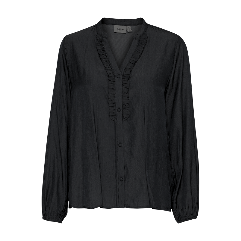 Super flot skjorte med kalvekrøs, elastik forenden af ærmet og er gennem knappet. Den sidder løst og findes i flere farver.