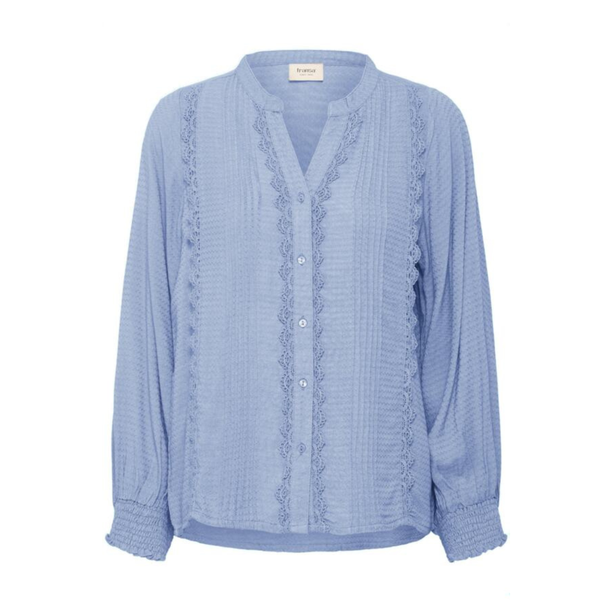 Smukkeste skjorte fra Fransa. Skjorten er gennemknappet, har v-hals, lange ærmer samt en masse fine detaljer.