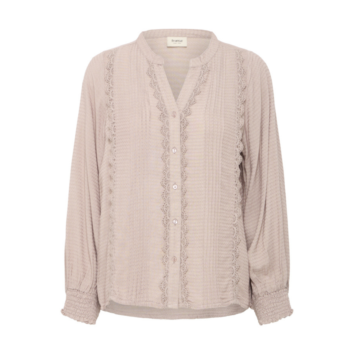Smukkeste skjorte fra Fransa. Skjorten er gennemknappet, har v-hals, lange ærmer samt en masse fine detaljer.