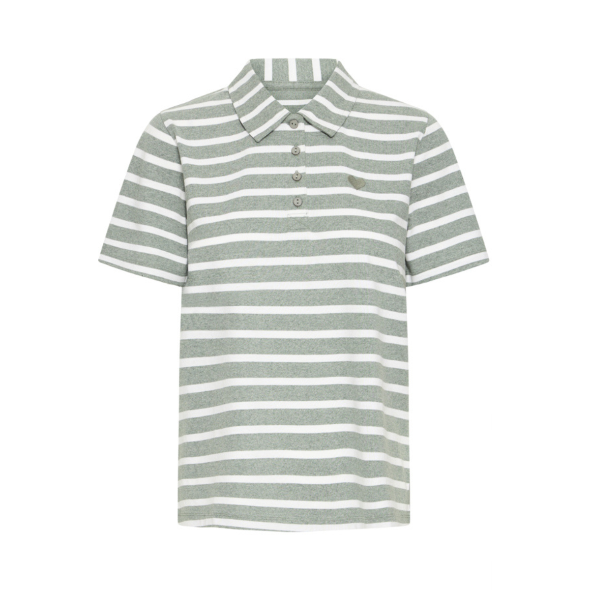 Cool t-shirt fra Fransa. T-shirten har en krave og et par knapper, korte ærmer samt et lille hjerte ved venstre bryst.