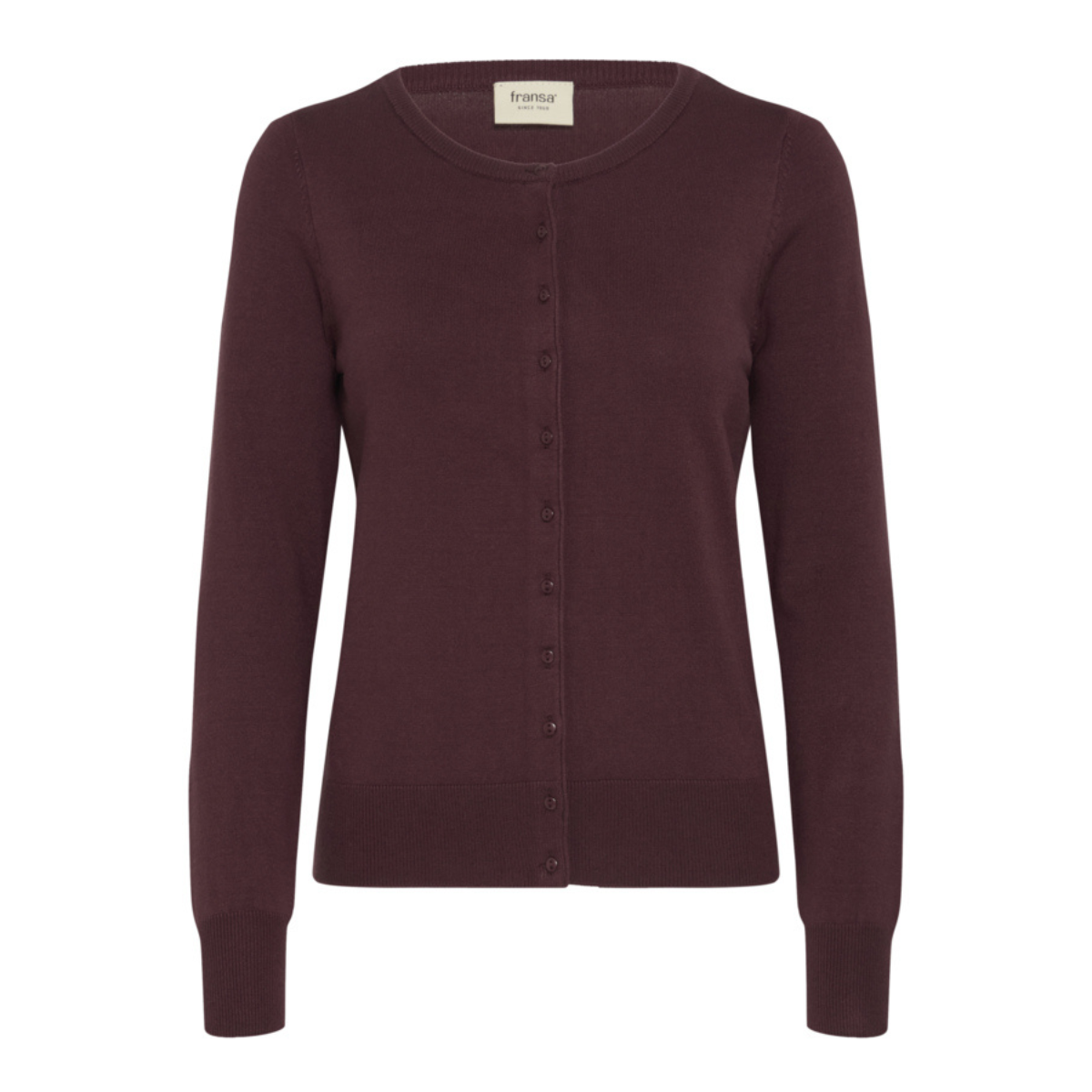 Sød cardigan fra Fransa. Cardiganen er gennemknappet, har en rund hals samt ribkant ved alle afslutninger.