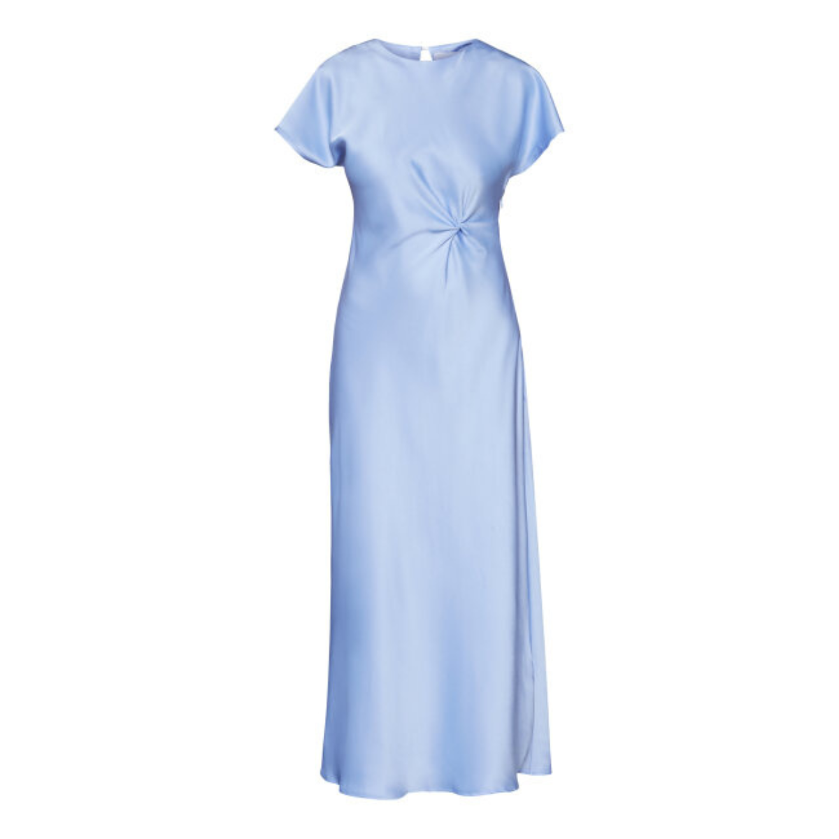Smuk lang kjole fra Sisters Point. Kjolen har en rund hals, korte ærmer samt en snoet detalje fortil.