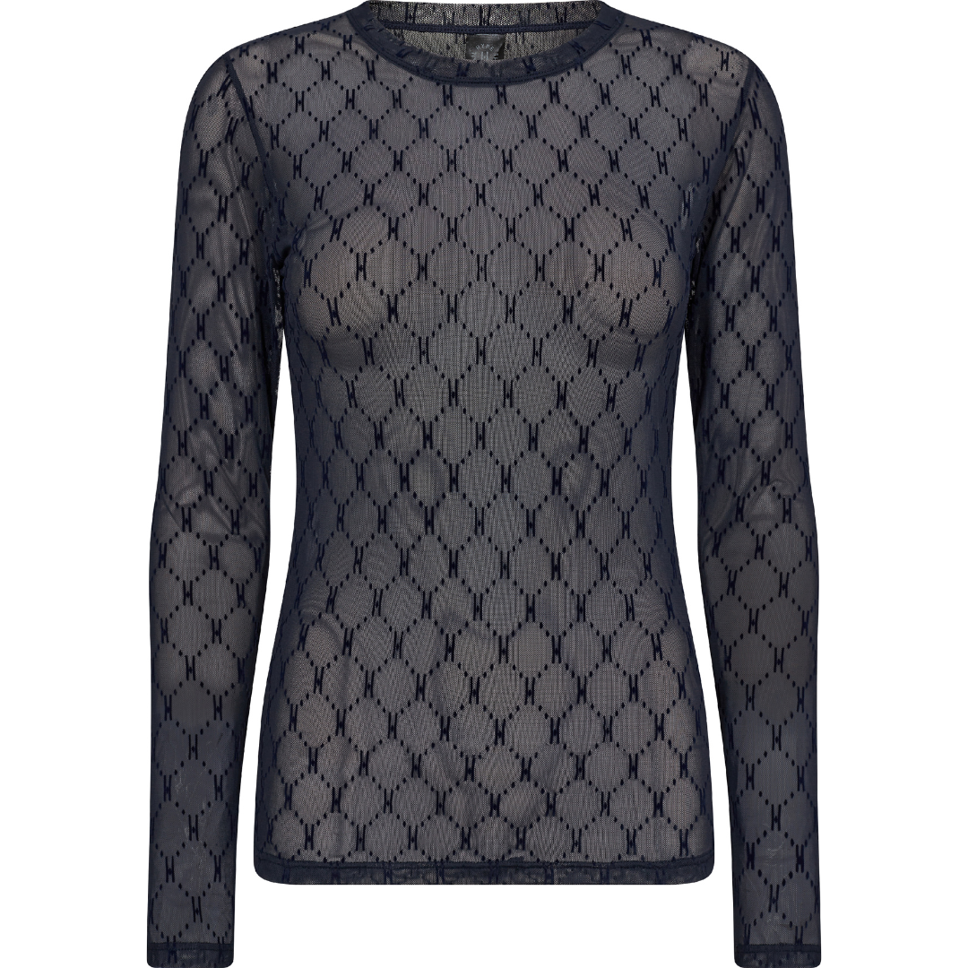 Super fin mesh bluse fra Hype The Detail. Blusen har rund halsudskæring og lange ærmer. Derudover er Hype The detail logoet er trykt på hele blusen.