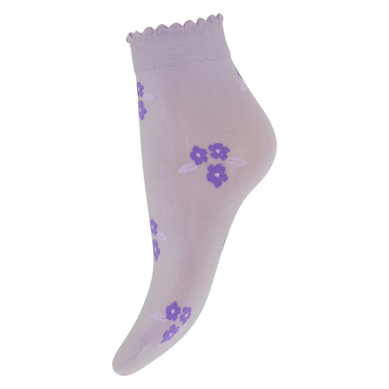 Fine ankelstrømper i en skøn farve med blomster. Strømperne har en sød takket kant.