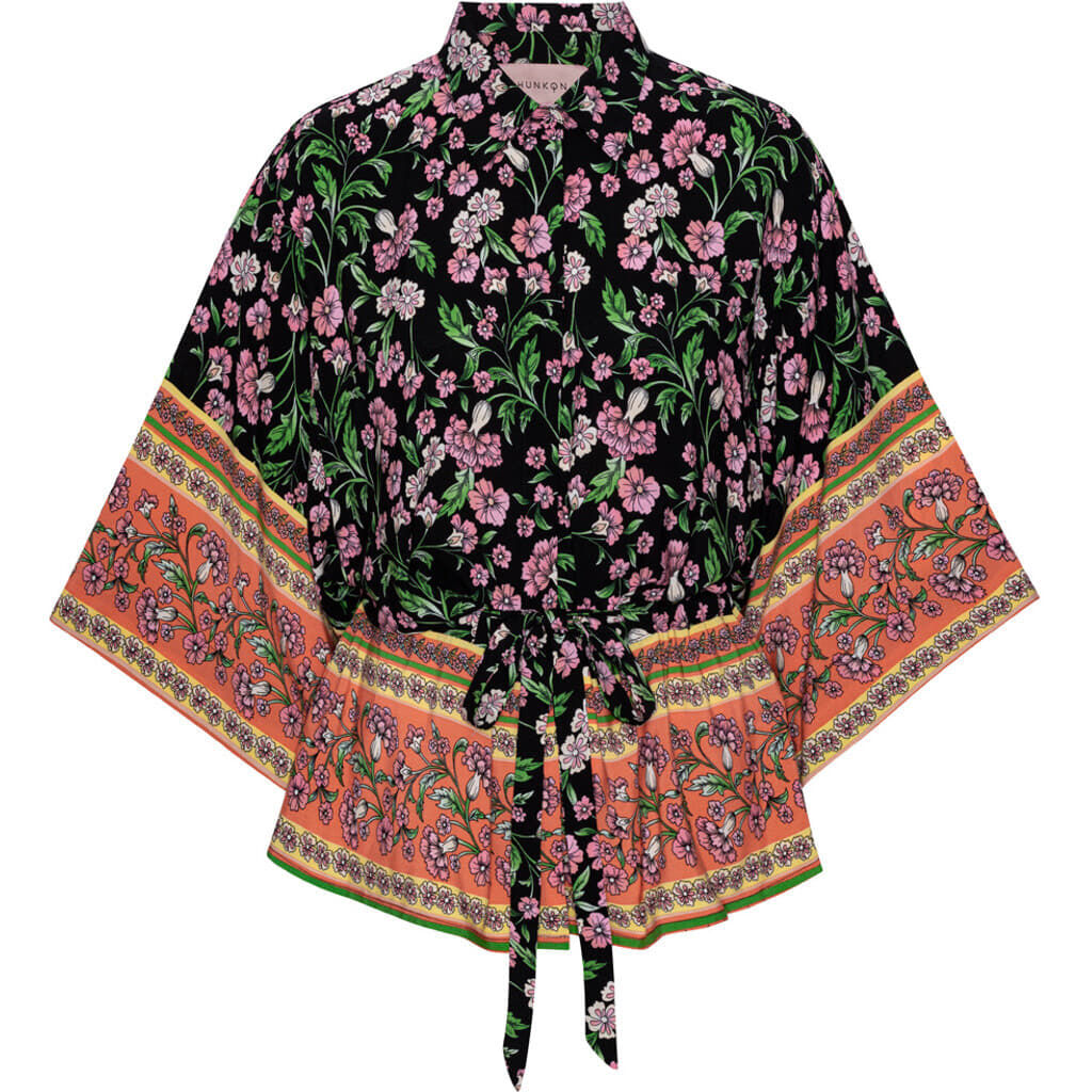 Smuk skjorte med løse ærmer og bindebånd , som kan tages af. Skjorten er i det fineste print og falder let i sin viskose kvalitet.