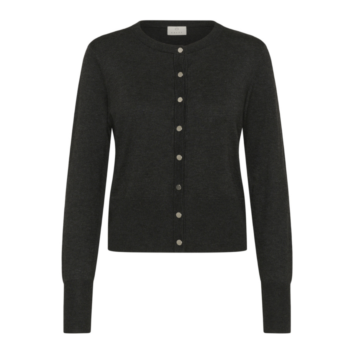 Lækker cardigan fra Kaffe. Cardiganen har ribdetaljer i alle udskæringer, knaplukning, rund hals og lange ærmer.