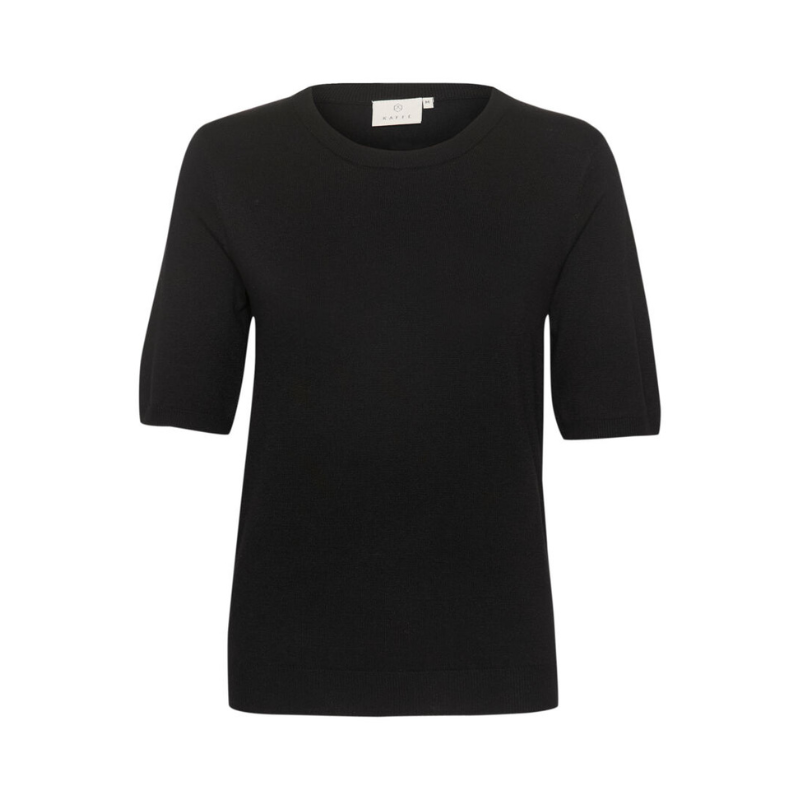 Lækker tynd strik fra Kaffe. Strikken har ribdetaljer i alle udskæringer, rund hals og korte ærmer.