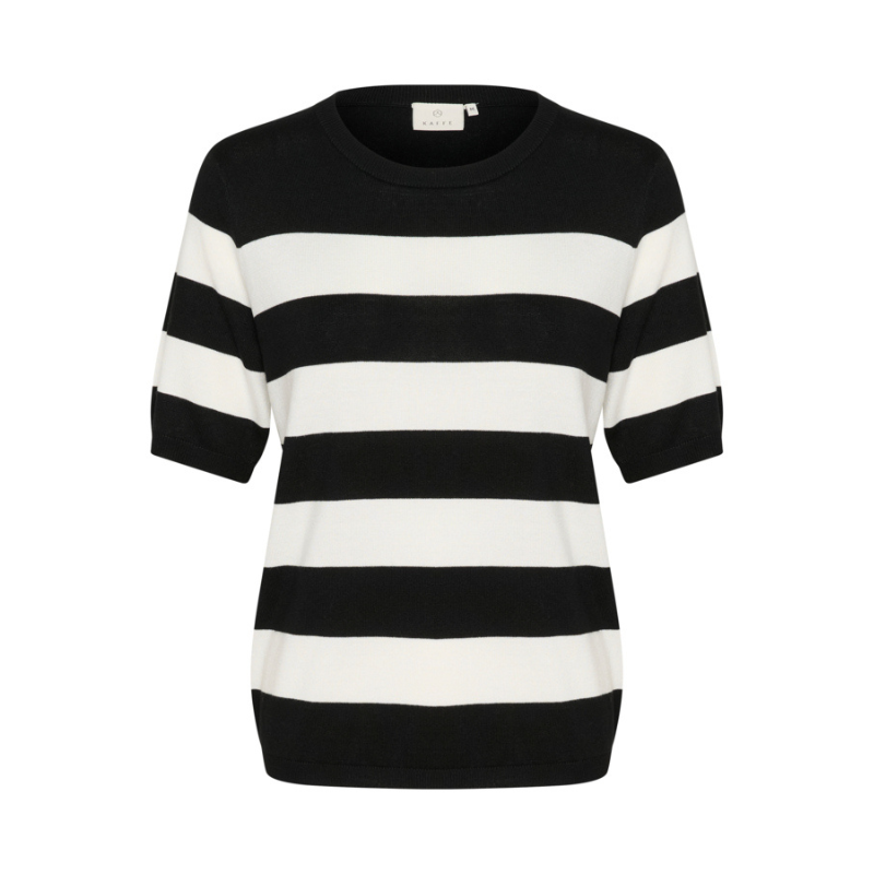 Lækker tynd strik fra Kaffe. Strikken har ribdetaljer i alle udskæringer, rund hals og korte ærmer.