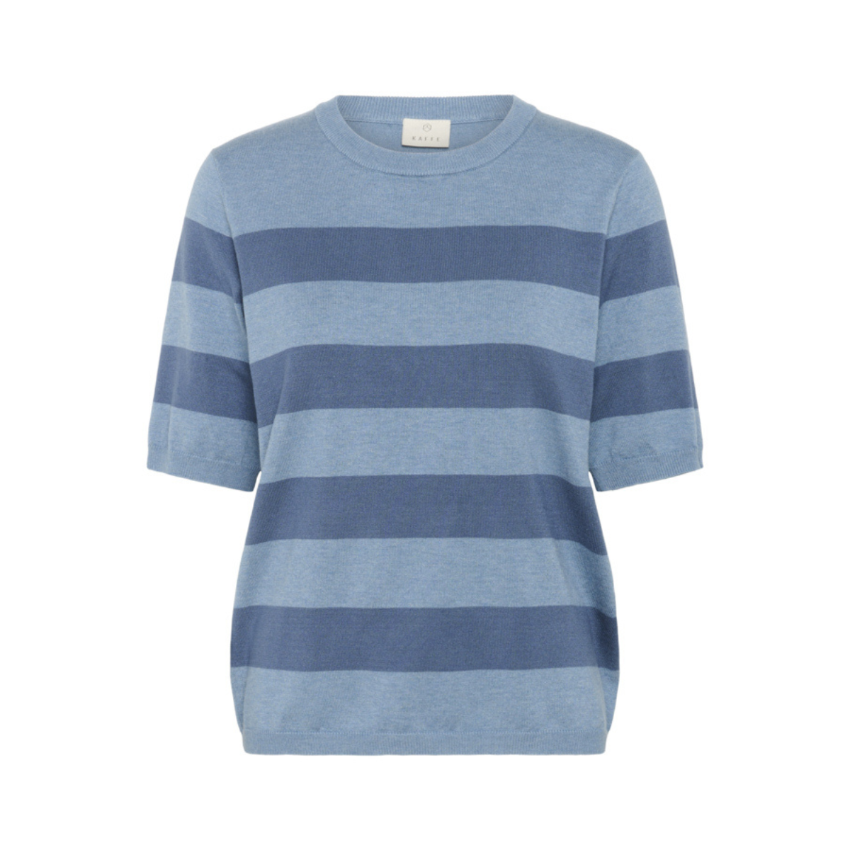 Lækker tynd strik fra Kaffe. Strikken har ribdetaljer i alle udskæringer, rund hals og korte ærmer.
