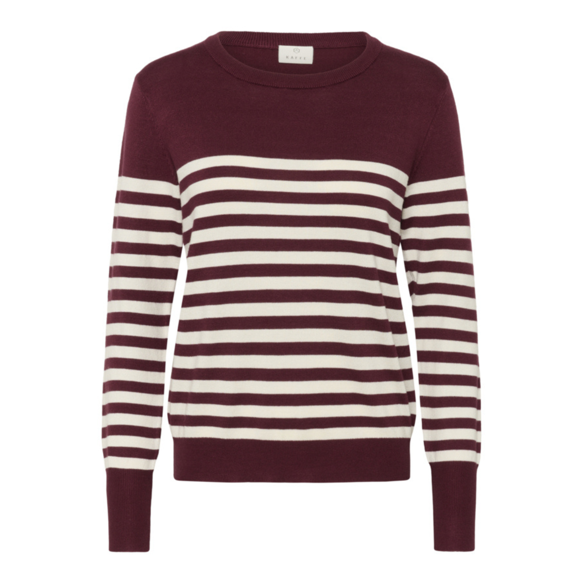 Super blød strikbluse med fine striber, ribdetaljer i udskæringerne og sidder ikke til.