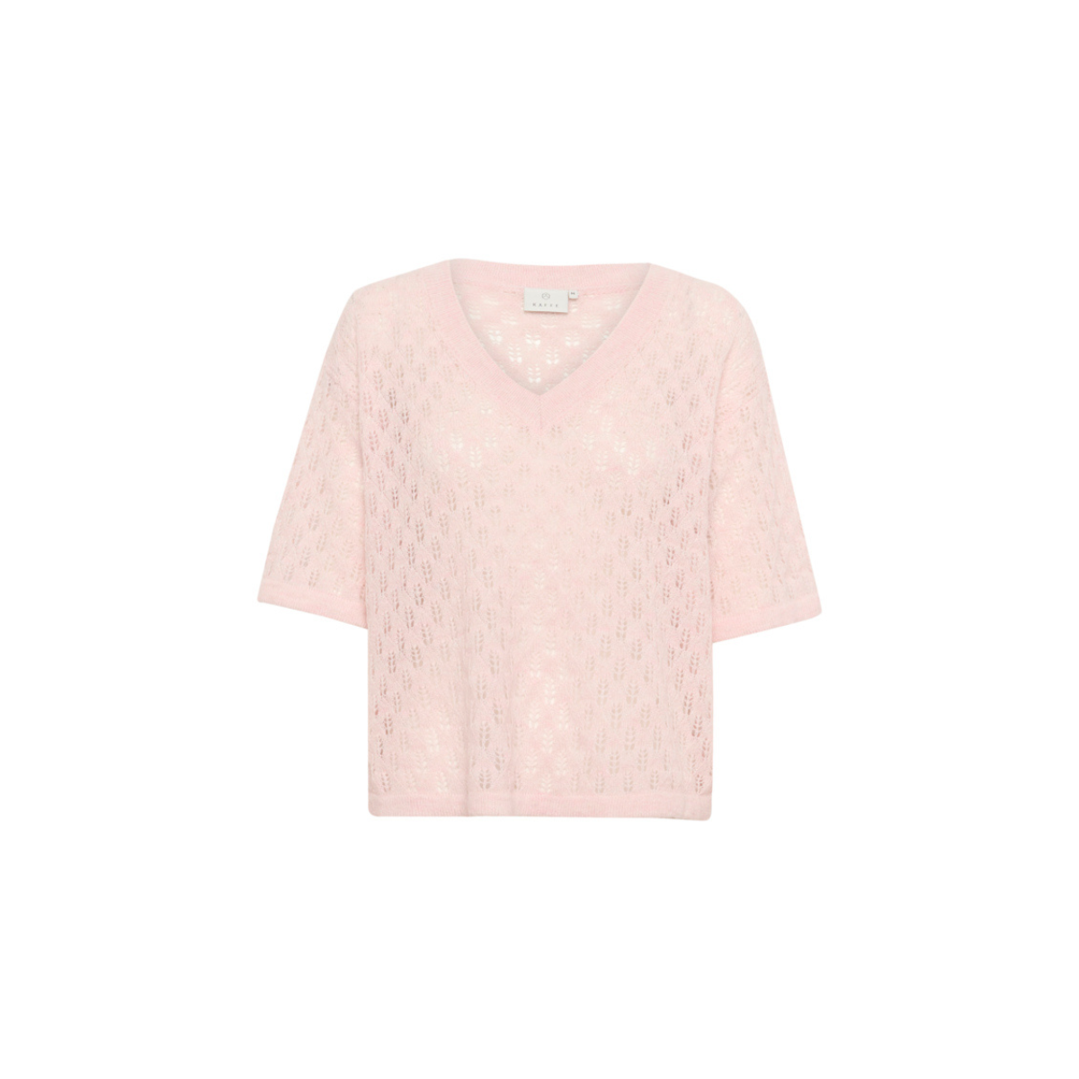 Super sød strik fra Kaffe. Strikken har V-udskæring, ærmer der går til albuerne samt en løs pasform. Materiale: 60% Polyester. 30% Nylon. 10% Uld. Vaskeanvisning: Vaskes ved 30 grader.