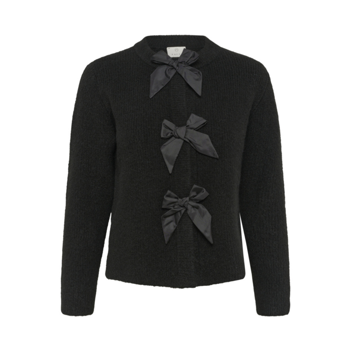 Smuk cardigan fra Kaffe. Cardiganen har en rund hals samt lange ærmer. Deruover har den fine sløjfer ved alle knaplukningerne.