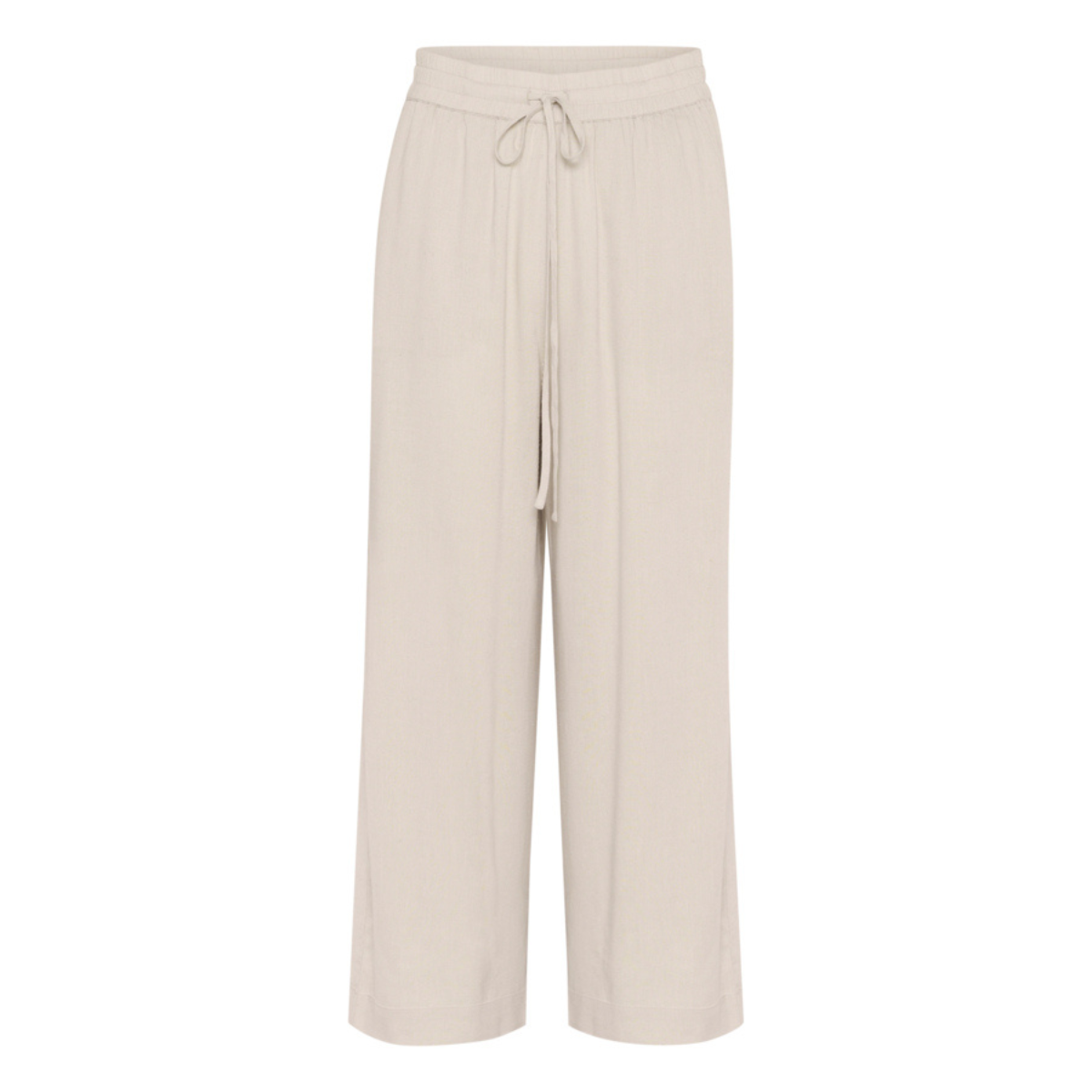 Lækre hørbukser fra Kaffe. Bukserne har elastik og bindebånd i taljen, brede ben samt to skrålommer.