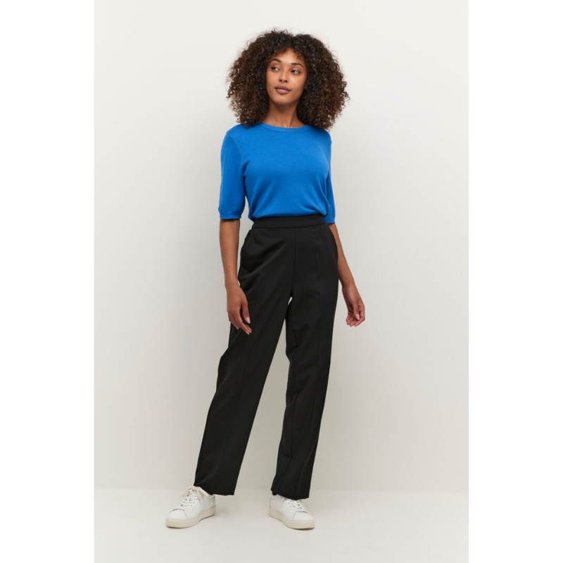 Cool straight bukser med elastik i livet og lommer. Materiale 77% Polyester 18% Viskose 5% Elasthan Vaskeanvisning Vaskes ved 30 grader