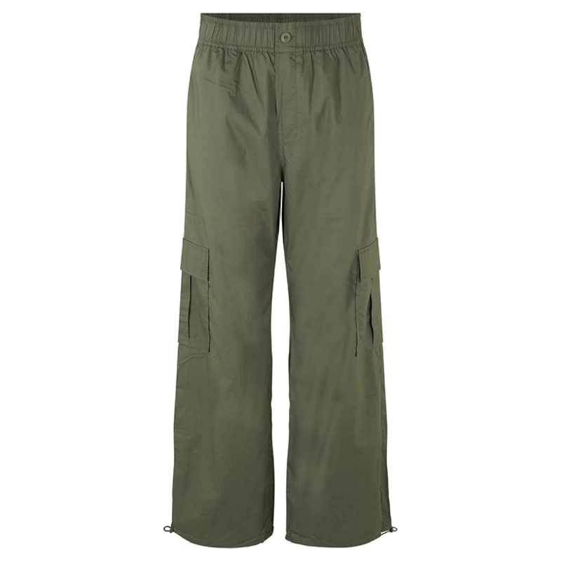 Cool bukser fra Global funk. Bukserne har vide ben, elastik i livet, knap og lommer i siderne og på benene.