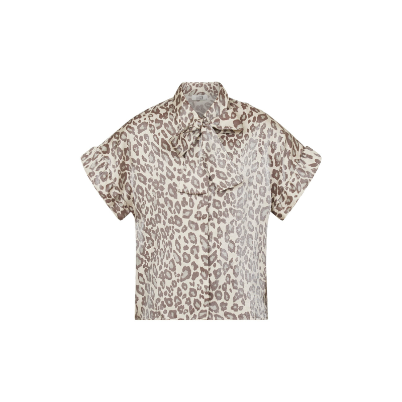 Cool skjorte fra Love&Divine. Skjorten er gennemknappet med skjult knaplukning, har korte ærmer og et bindebånd som kan bruges til at binde en sløjfe ved kraven.